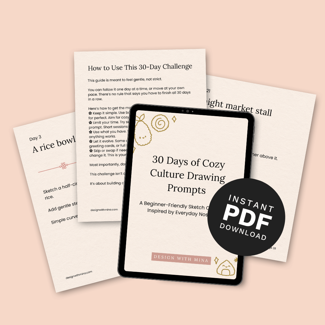 Sign up for the 30 Days of Cozy Culture Drawing Prompts